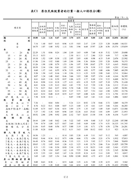 表C1 原住民族就業者的行業-按人口特性分(續)