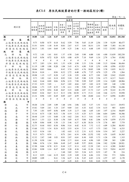 表C1-1 原住民族就業者的行業-按地區別分(續)