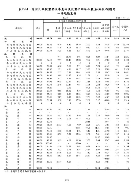 表C2-1 原住民族就業者從事農林漁牧業平均每年農(林漁牧)閒期間