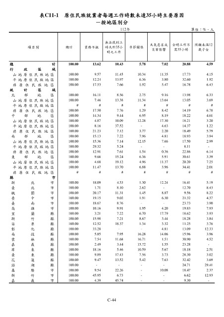 表C11-1 原住民族就業者每週工作時數未達35小時主要原因