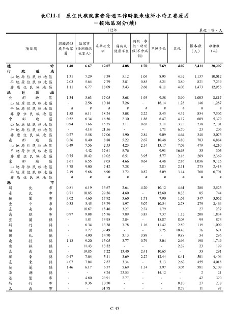 表C11-1 原住民族就業者每週工作時數未達35小時主要原因
