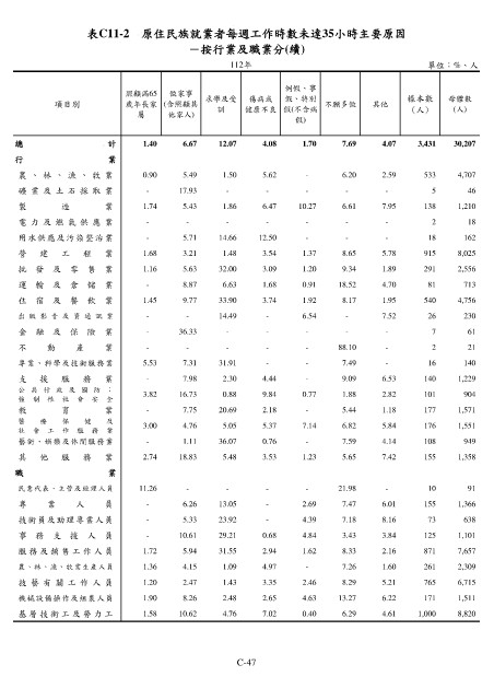 表C11-2 原住民族就業者每週工作時數未達35小時主要原因