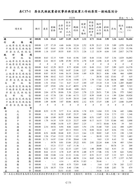表C17-1 原住民族就業者從事非典型就業工作的原因-按地區別分