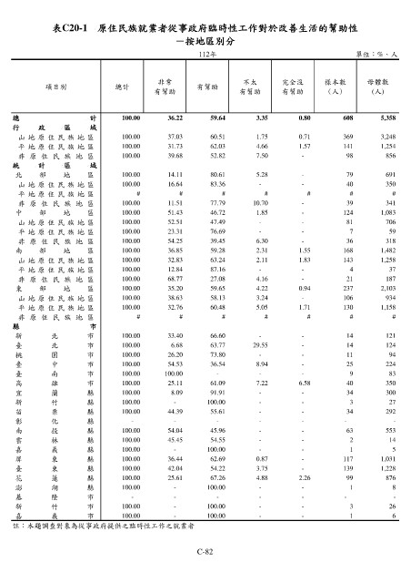 表C20-1 原住民族就業者從事政府臨時性工作對於改善生活的幫助性