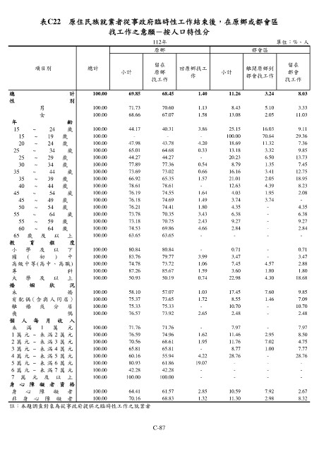 表C22 原住民族就業者從事政府臨時性工作結束後,在原鄉或都會區