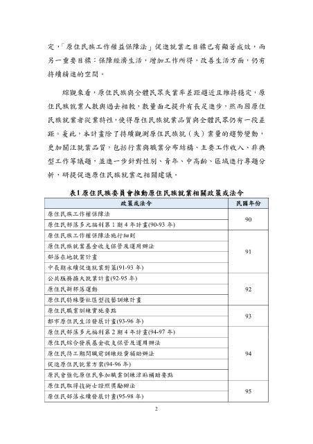 距。爰此,本計畫除了持續觀測原住民族就(失)業量的趨勢變動,