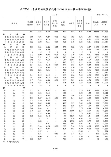 表C23-1 原住民族就業者找尋工作的方法-按地區別分(續)