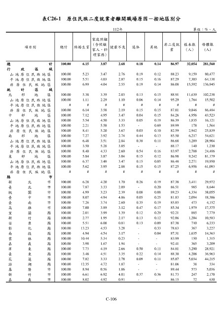 表C26-1 原住民族二度就業者離開職場原因-按地區別分