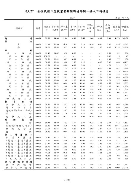 表C27 原住民族二度就業者離開職場時間-按人口特性分