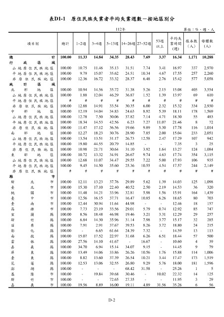 表D1-1 原住民族失業者平均失業週數-按地區別分
