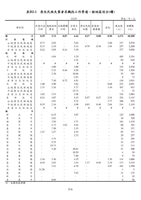 表D2-1 原住民族失業者求職找工作管道-按地區別分(續)