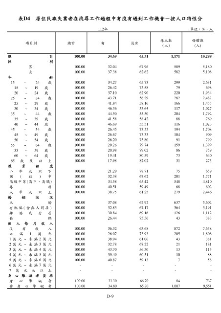 表D4 原住民族失業者在找尋工作過程中有沒有遇到工作機會-按人口特性分