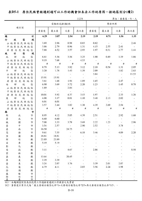 表D5-1 原住民族曾經遇到過可以工作的機會但未去工作的原因-按地區別分(續2)