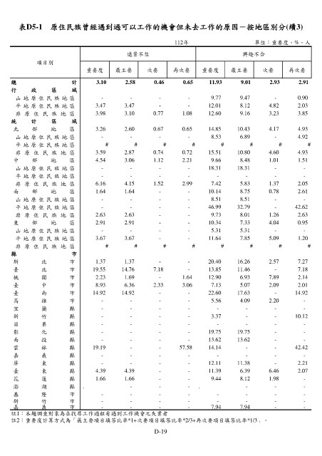 表D5-1 原住民族曾經遇到過可以工作的機會但未去工作的原因-按地區別分(續3)