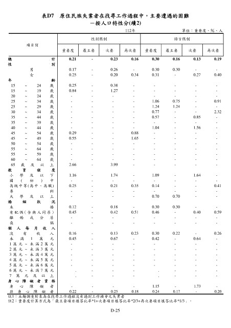 表D7 原住民族失業者在找尋工作過程中,主要遭遇的困難