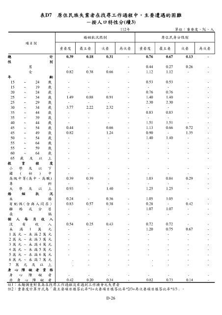 表D7 原住民族失業者在找尋工作過程中,主要遭遇的困難