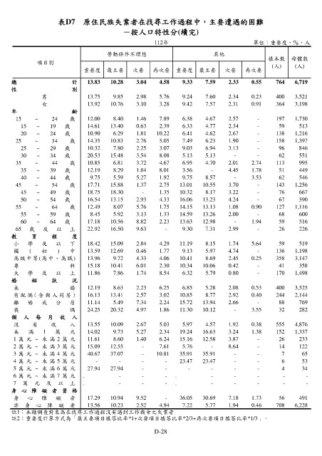 表D7 原住民族失業者在找尋工作過程中,主要遭遇的困難
