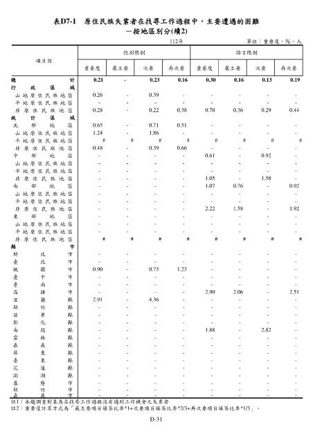 表D7-1 原住民族失業者在找尋工作過程中,主要遭遇的困難