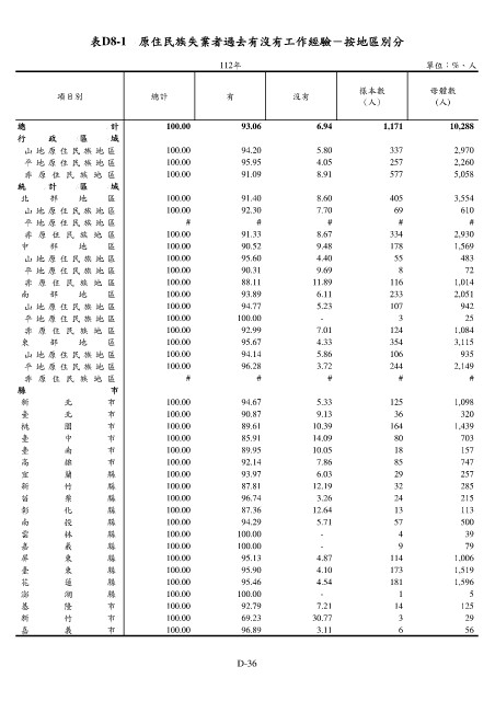 表D8-1 原住民族失業者過去有沒有工作經驗-按地區別分