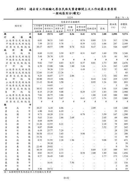 表D9-1 過去有工作經驗之原住民族失業者離開上次工作的最主要原因
