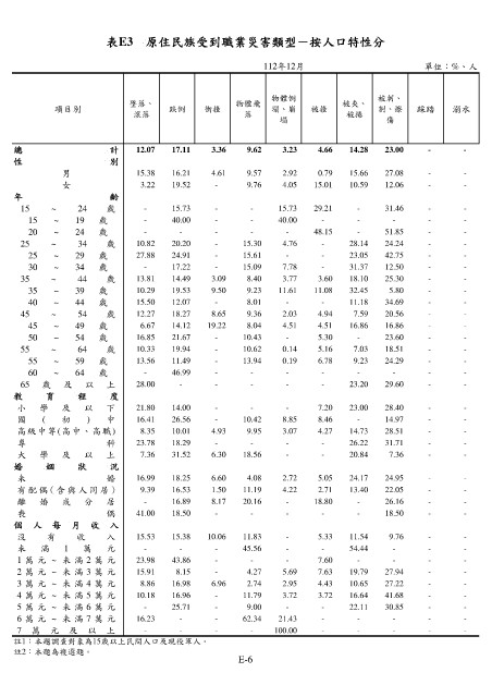註1:本題調查對象為15歲以上民間人口及現役軍人。