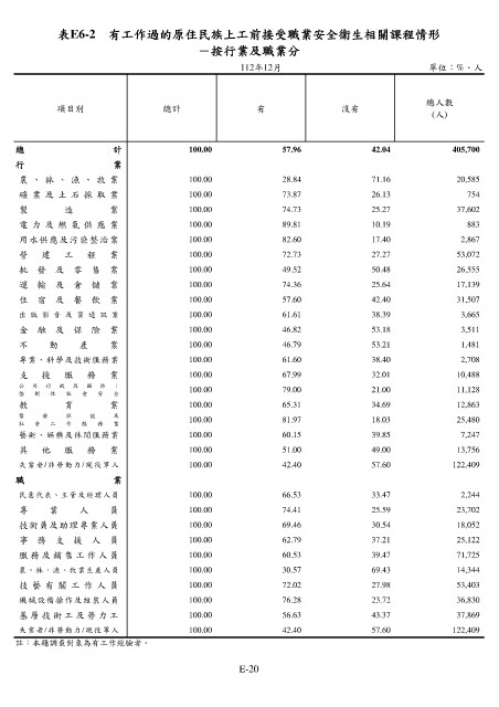 表E6-2 有工作過的原住民族上工前接受職業安全衛生相關課程情形