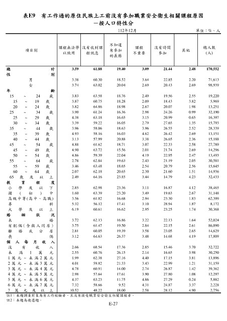 表E9 有工作過的原住民族上工前沒有參加職業安全衛生相關課程原因