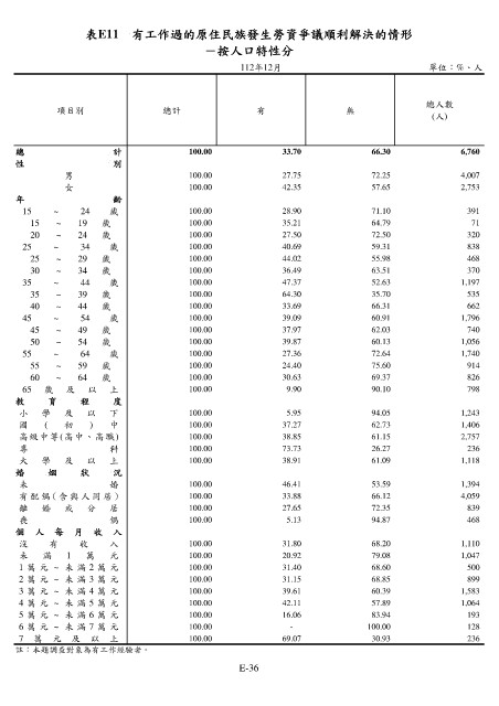表E11 有工作過的原住民族發生勞資爭議順利解決的情形