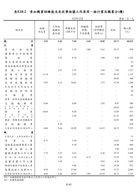 表E18-2 參加職業訓練後沒有從事相關工作原因-按行業及職業分(續)