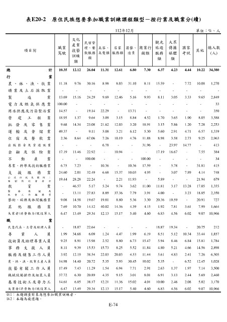 表E20-2 原住民族想要參加職業訓練課程類型-按行業及職業分(續)
