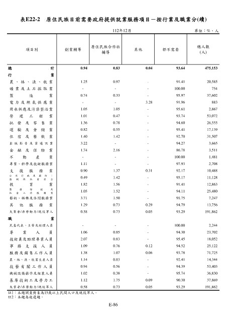 表E22-2 原住民族目前需要政府提供就業服務項目-按行業及職業分(續)
