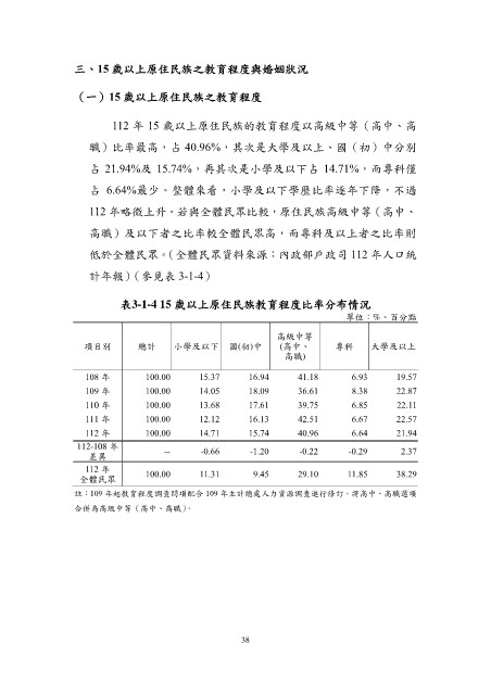 (一)15 歲以上原住民族之教育程度