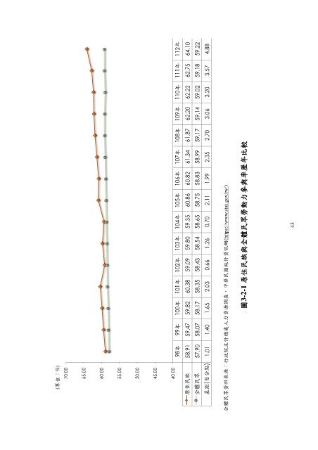 圖3-2-1 原住民族與全體民眾勞動力參與率歷年比較