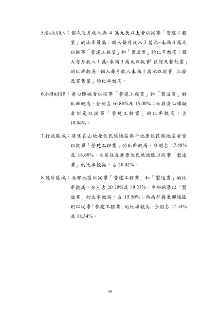 及 18.69%;而居住在非原住民族地區以從事「製造