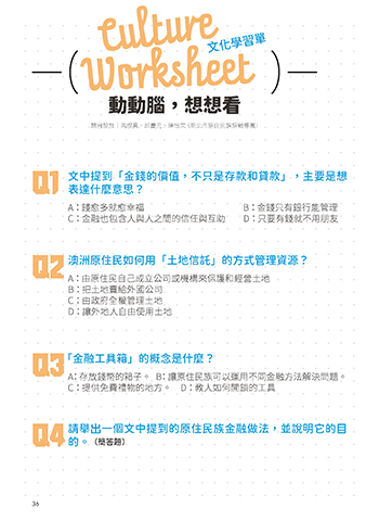 A:存放錢幣的箱子。 B:讓原住民族可以運用不同金融方法解決問題。