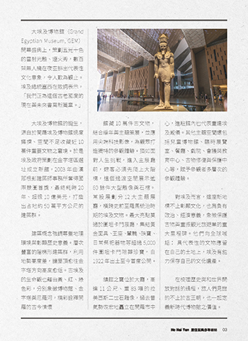 埃及政府策劃在金字塔區選 對人生挑戰,進入主展廳 育中心、古物修復與保護中