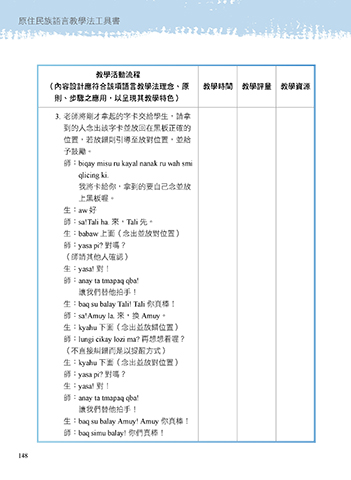 (內容設計應符合該項語言教學法理念、原 教學時間 教學評量 教學資源