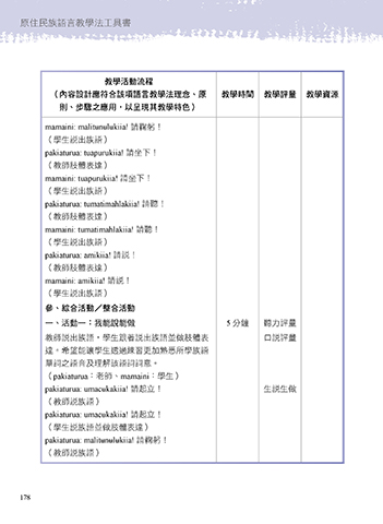 (內容設計應符合該項語言教學法理念、原 教學時間 教學評量 教學資源