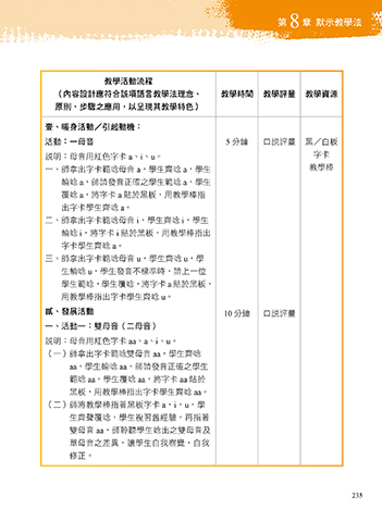 (內容設計應符合該項語言教學法理念、 教學時間 教學評量 教學資源