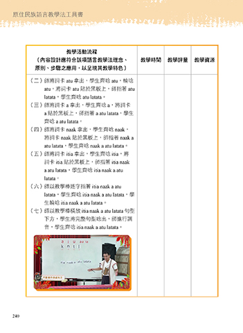 (內容設計應符合該項語言教學法理念、 教學時間 教學評量 教學資源