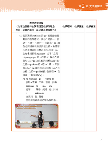 (內容設計應符合該項語言教學法理念、 教學時間 教學評量 教學資源