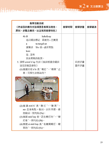(內容設計應符合該項語言教學法理念、 教學時間 教學評量 教學資源