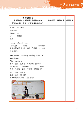 (內容設計應符合該項語言教學法理念、 教學時間 教學評量 教學資源