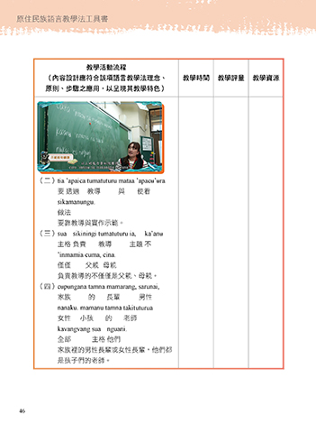 (內容設計應符合該項語言教學法理念、 教學時間 教學評量 教學資源