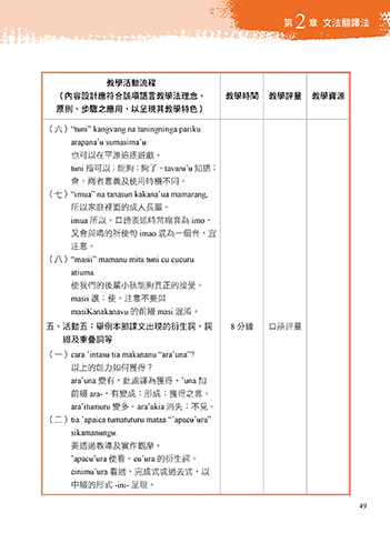 (內容設計應符合該項語言教學法理念、 教學時間 教學評量 教學資源