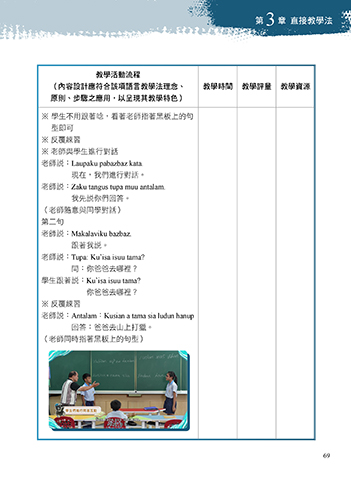 (內容設計應符合該項語言教學法理念、 教學時間 教學評量 教學資源
