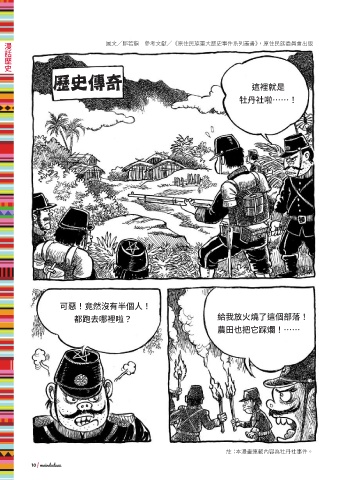 漫話歷史 圖文/邱若龍 參考文獻/《原住民族重大歷史事件系列叢書》,原住民族委員會出版 歷史傳奇 這裡就是 牡丹社啦……! 可惡!竟然沒有半個人! 都跑去哪裡啦? 給我放火燒了這個部落! 農田也把它踩爛!…… 註:本漫畫連載內容為牡丹社事件。 10 | mainduduaz ɨʹ @ဘ༑ዝ̦ JOEE ɨʹ @ဘ༑ዝ̦ JOEE