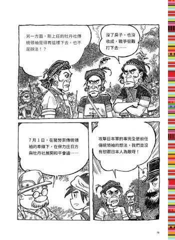 另一方面,新上任的牡丹社傳 沒了房子,也沒 統領袖覺得再這樣下去,也不 收成,戰爭很難 是辦法!? 打下去…… 7 月 1 日,在豬勞朿傳統領 攻擊日本軍的事完全是前任 袖的牽線下,在保力庄日方 傳統領袖的想法,我們並沒 與牡丹社展開和平會議…… 有想跟日本人為敵呀! 13 ɨʹ @ဘ༑ዝ̦ JOEE @ဘ༑ዝ̦ JOEE ɨʹ