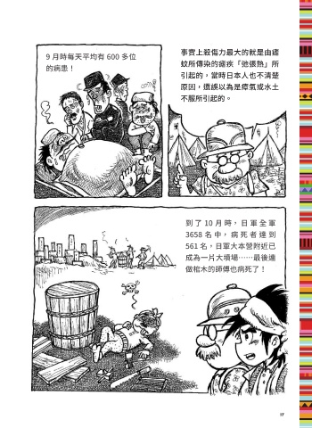 事實上殺傷力最大的就是由瘧 9 月時每天平均有 600 多位 蚊所傳染的瘧疾「弛張熱」所 的病患! 引起的,當時日本人也不清楚 原因,還誤以為是瘴氣或水土 不服所引起的。 到了 10 月時,日軍全軍 3658 名中,病死者達到 561 名,日軍大本營附近已 成為一片大墳場……最後連 做棺木的師傅也病死了! 17 ɨʹ @ဘ༑ዝ̦ JOEE ɨʹ @ဘ༑ዝ̦ JOEE