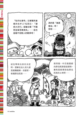 漫話歷史 「牡丹社事件」日軍戰死者 真的是「進退 總共也才 17 名而已,「瘧 維谷」呢! 疾大流行」卻讓日軍「不戰 苦呀…… 而全軍意氣喪失」……這也 是看不見敵人的戰爭呀! 突然間,中日兩國都 就在等待北京的決定 時,清軍也派人深入部 向原住民族發送禮物, 落賞賜銀牌、衣服等, 實則是都想染指原住 民族的土地呀…… 收攏原住民族…… 18 | mainduduaz ɨʹ @ဘ༑ዝ̦ JOEE @ဘ༑ዝ̦ JOEE ɨʹ